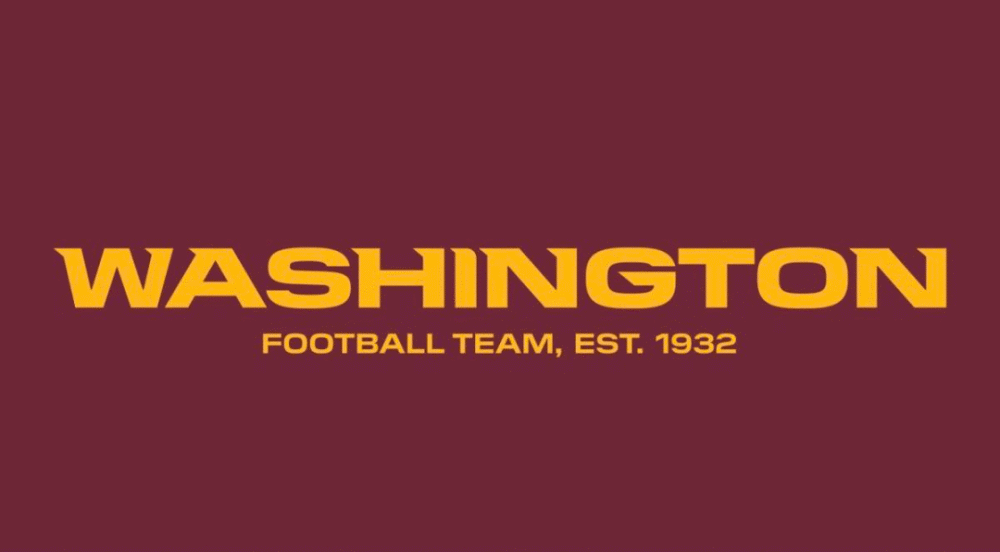 7月24日,华盛顿红皮宣布将改名「华盛顿橄榄球队(Washington Football Team)」原来的LOGO已经看不见了(上图),取而代之的是带有原配色的新名字文字字标。